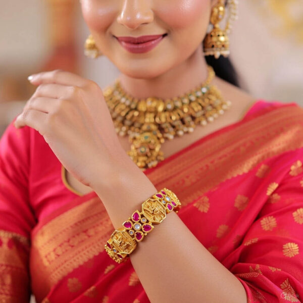 These bangles will add a festive sparkle to your ensemble. The bangles are carefully made to look adaptable and go with practically any ensemble, and the glow and brilliance of the beautiful fancy matte gold polish temple bangle make it the ideal purchase for the holiday season. You’ll fall in love with these gorgeous bangles from yaaritA Lifestyle Jewellery just by looking at you.