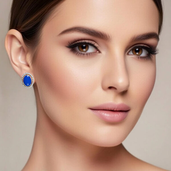 yaaritA Premium Quality Imitation Crystal Stone Navy Blue Color Stud Earrings