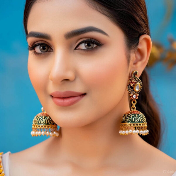 You’ll fall in love with these gorgeous green color mint meena earrings from yaaritA Lifestyle Jewellery just by looking at you. These earrings are made of gold-plated Alloy and have a great polish. These earrings are beautifully crafted and will complement any outfit.